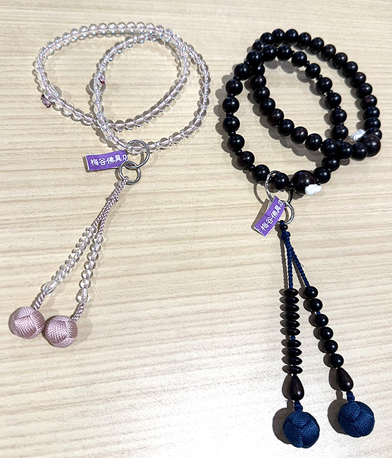 うめたにでは、各宗派の本式念珠から宗派問わずお使いいただける片手念珠、