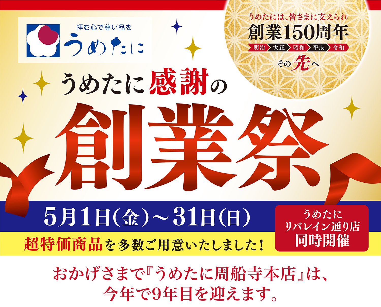 5月1日(金)から31日(日)まで創業祭を開催させていただきます。